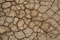 Erg droge gebarsten aarde, gescheurd door uitdroging, vormt een fraai achtergrond beeld in beige.