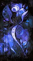 Ergens in het bos ver van de bewoonde wereld, in de echte natuur staat een bijzondere plant. Een hele bijzondere plant. Waar die plant vandaan komt is vooralsnog een raadsel. Deze bijzondere bloem is een echte elegante verschijning. Ze torent hoog boven de normale bosplanten uit en haar bladeren zijn niet zozeer het normale groen, maar vooral cyaan en paars. Het lijkt wel alsof ze ergens van onder de indruk is gezien de hand waarmee ze haar hoofd ondersteund. Haar bloemen zien eruit als ogen en haar steel gaat kronkelend omhoog als een stripfiguur. Het bos licht op als zij haar bloemen laat zien. Als je haar bloemen wilt zien, moet je snel zijn, want ze bloeit maar een paar dagen, dus je hebt niet heel veel tijd om deze wonderlijke dame te gaan aanschouwen. De kleuren van dit surrealistische en abstracte werk zijn groen, paars, cyaan, blauw, bruin en wit, een kleurrijk geheel dus.