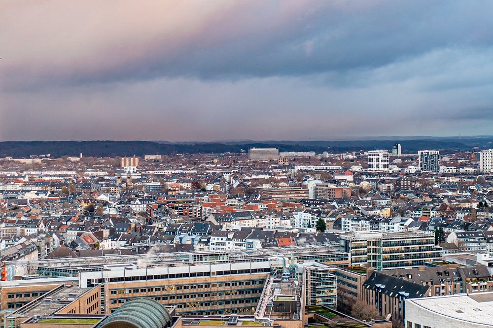 Een mooie en sfeervolle foto van de Ergo-toren bij zonsondergang.