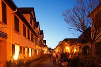 Historische huizen in het oude stadscentrum bij schemering, Erlangen, Midden-Franken, Franken, Beieren, Duitsland, Europa