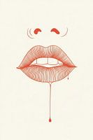 Een pop-artprint met een close-up van een vrouwenmond met rode lippenstift. Het sensuele en erotische werk straalt passie uit. De grafische lijnen maken het werk speels en krachtig.
