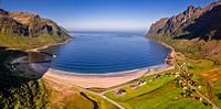 Op het eiland Senja, het op een na grootste eiland van Noorwegen, ligt het spectaculaire Ersfjord-strand. Je zou het fijnkorrelige zand waarschijnlijk verwachten op een Caribisch eiland.