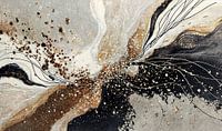 Abstract in aardetinten met goud accenten en een grove textuur.