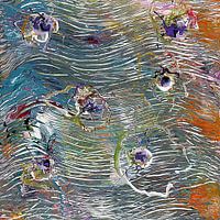 Escape Artists is hoe ik dit acrylschilderij heb genoemd. Voor mij lijkt het alsof een deel van de verf probeert te ontsnappen door de openingen in de rasters die ik heb gemaakt! Het raster is gemaakt met een haarkam en de plassen kleur zijn gemaakt met een hamerslagtechniek. Een kleurrijk en expressief stuk voor aan de muur.