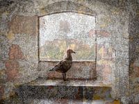 San Francisco, Alcatraz. Deze meeuw kijkt verlangend uit het raam naar de vrijheid. Hij kan wegvliegen door het raam. Hoe anders was dat voor de gevangenen, die tot 1963 in deze gevangenis werden opgesloten...