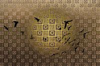 Sommige vogels vliegen voor de bolling langs en andere lijken nog gevangen te zitten in de bolling.