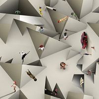 Dit werk is geïnspireerd op de stijl van Escher waarin ik in verschillende perspectieven onderdelen van mijn eigen kunstwerken heb gebruikt om een zeer gedetaileerd werk te verkrijgen waar de kijker veel verhalen uit kan halen.