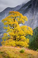 Esdoorn bij de Großer Ahornboden in Oostenrijk in de herfst met stormwolken
