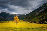 Esdoorn bij de Großer Ahornboden in Oostenrijk in de herfst met stormwolken