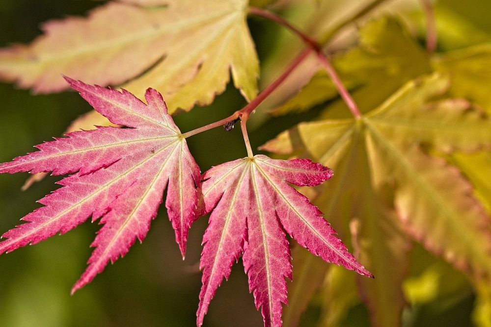 Close-up van de verkleurende bladeren aan deze Esdoorn.