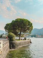 Luchtige oeverstabilisatie met een indrukwekkende pijnboom aan de rand van Como.