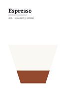 Op dit schilderij vind je een design van koffie tegen een witte achtergrond, Op het design zie je ook hoe je de koffie maakt!