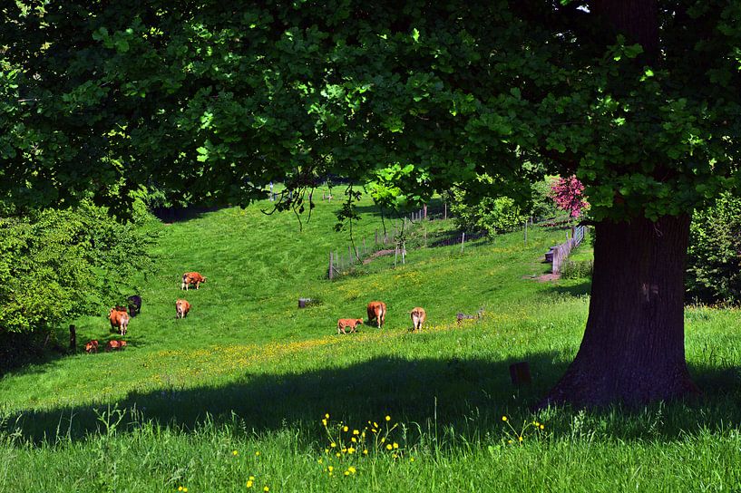 Rinderherde in der Grossstadt Essen im Stadtteil Horst auf dem Sonnenhof, wo es aussieht wie in den Bergen