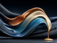 In een wereld waar de elementen spreken, ontmoeten er vier elkaar: vuur in de vorm van vloeibaar koper, water in diepblauw, aarde als zanderig goud en lucht in een delicate glans. Ooit gescheiden door de wetten van de natuur, kwamen ze samen op een zwart doek…