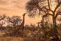 Een prachtige zonsopkomst en daar loopt dan een giraf aan je voorbij....