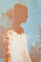 Details: vrouw, profiel, abstract, minimalistisch, terracotta, blauw, moderne kunst, textuur, silhouet,…