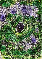 In het dagelijks leven kan ik nauwelijks stilzitten. Het tekenen met een fine liner op brusho ondergronden heeft mij leren focussen. In stilte.
