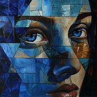 In dit betoverende vrouwenportret in blauw worden de contouren van haar elegantie geaccentueerd door een dans van sierlijke vlinders en weelderige bloemen. De azuurblauwe achtergrond weerspiegelt de rust van haar ziel, terwijl de kleurrijke flora en fauna haar innerlijke schoonheid accentueren, als een ode aan de natuurlijke harmonie die in haar aanwezig is.