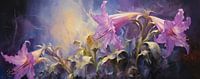 Ethereal Floral Symphony - Dit schilderij van de Lobelia bloem benadrukt de elegante, gedetailleerde vormen en levendige paarse tinten die het licht op dramatische wijze vangen.