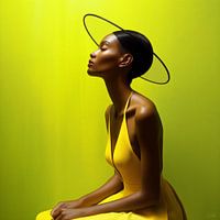 In dit kunstwerk wordt de serene schoonheid van een vrouw gevangen in een setting die minimalisme en elegantie combineert. De zachte, fotorealistische stijl brengt de rijke details van haar huid en de vloeiende lijnen van haar gele jurk perfect tot leven. Het stralende geel van de achtergrond harmonieert prachtig met de warme tonen van…