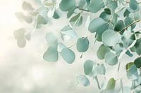 Delicate, mintgroene bladeren dansen in het zachte licht, gehuld in een glinsterende mist. Hun delicate contouren lijken te fluisteren, terwijl de achtergrond wegzinkt in een dromerige waas. Deze harmonieuze compositie straalt rust uit en nodigt je uit om te genieten van de zachte aanraking van de natuur.
