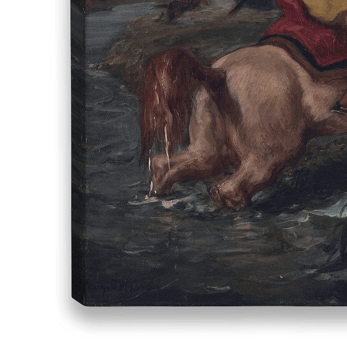 Koop dit schilderij Eugène Delacroix, Marokkaanse ruiter steekt een doorwaadbare plaats over, ca. 1850 van Atelier Liesjes als reproductie op canvas, aluminium dibond, (ingelijste) fotoprint, behang en ArtFrame, op maat geprint in Fine-Art kwaliteit.