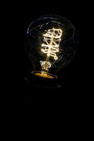 Een foto van een brandende lamp! Ik ontdekte een maniertje (Eureka!) om het felle schijnsel toch zoveel te verminderen dat de gloeidraden zichtbaar werden. Daar kwam dit toch wel bijzondere werk uit. Een lampje om een helder moment uit te drukken.
