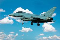 Eurofighter in de landing bij luchtmachtbasis Leeuwarden tijdens de Frisian Flag oefening 2018. De achtergrond is door de fotograaf aangepast.