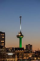 De iconische en markante Euromast, mooi in het avondlicht tegen de mooie kleuren van de schemering.