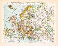 Een staatkundige overzichtskaart van Europa aan het begin van de 20ste eeuw. Op een staatkundige cartografische weergave zijn de individuele staten en landen aangegeven.