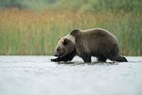 European Brown Bear / Europaeischer Braunbaer ( Ursus arctos ) walks through shallow water, hunting, searching for food, exploring its environment.