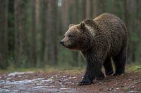 Eurasian Brown Bear / Braunbaer ( Ursus arctos ), strong and powerful, at the edge of a forest, Europe.