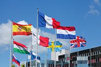 Europese vlaggen, Europees Parlement, Konrad Adenauer-gebouw, Europese wijk Kirchberg Plateau, Luxemburg-stad, Europa