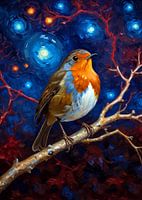 Koop dit vogel kunstwerk Europees Roodborstje in Sterrennacht 2 van MIROKKU als print op canvas, aluminium dibond, (ingelijste) fotoprint, behang en ArtFrame. Voor jou op maat geprint in Fine-Art kwaliteit.