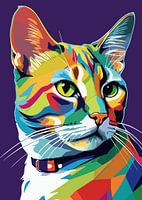 Dit pop-art portret transformeert het slanke frame van de Europese Korthaar in een canvas van levendige kleuren - limoengroen, vurig rood en elektrisch blauw. Met scherpe contouren en expressieve ogen schijnt de elegantie van de kat door, perfect om urban chic toe te voegen aan moderne interieurs.
