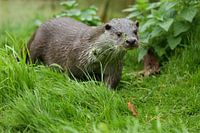 Een Europese Otter is net uit het water gekomen. De Europese Otter is een marterachtig zoogdier. Het is de soort met het grootste verspreidingsgebied van de otterfamilie. Het dier eet vooral vis, maar jaagt ook op amfibieën, schaaldieren, kleine zoogdieren, vogels en reptielen. Bestaande populaties van deze semi-aquatische marterachtige komen voor in een grote verscheidenheid aan zoetwater habitats in Azië, Europa en delen van Noord-Afrika. Ondanks de grote verspreiding heeft het verlies van leefgebieden geleid tot afnemende populaties.