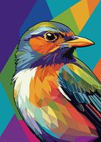 Tegen een achtergrond van abstracte bloemen knalt dit Europese Roodborstje met levendige tinten scharlakenrood, turquoise en zonnig geel. De delicate houding van de vogel wordt geschetst in scherpe zwarte strepen, waardoor traditionele charme wordt gecombineerd met een gedurfde, eigentijdse esthetiek die perfect is voor moderne huizen.