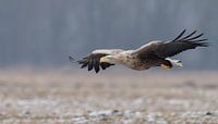Een volwassen Europese zeearend in volle vlucht, goed te zien de grote spanwijdte van de vleugels