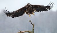 Jonge Europese zeearend komt aan vliegen om te gaan landen op de dode boom