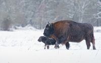 Europese bizons in de sneeuw van Jeffrey Hol