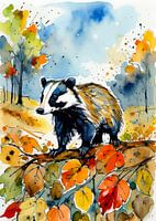 Koop dit schilderij Europese das aquarel van MIROKKU als reproductie geprint op canvas, aluminium dibond, (ingelijste) fotoprint, behang en ArtFrame. Voor jou op maat geprint in Fine-Art kwaliteit.