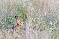 Europese haas (Lepus europaeus) op een weiland in de zomer in Frankfurt, Duitsland.