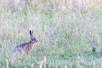 Europese haas (Lepus europaeus) op een weiland in de zomer in Frankfurt, Duitsland.