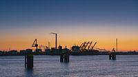 Europoort net na zonsondergang Mooie oranje lucht, industrieel . Deel van de rotterdamse haven in het begin van het blauwe uur.