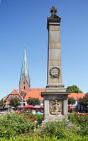 Marktplein met St. Michaelis-stadkerk en Obelisk, Eutin, Sleeswijk-Holstein, Duitsland, Europa