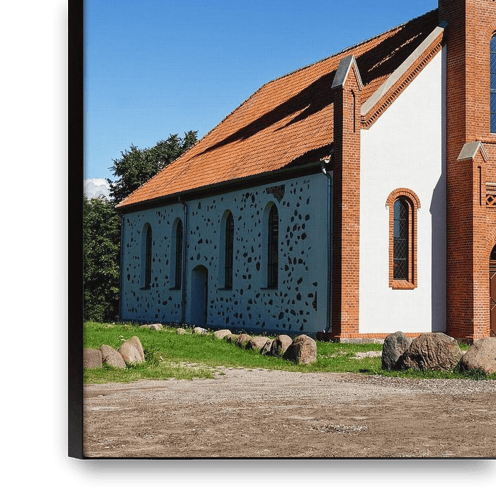 Koop de foto Ev. parochiekerk in Deutsch Crottingen van Gisela Scheffbuch op canvas, aluminium dibond, (ingelijste) fotoprint, behang en ArtFrame, op maat geprint in Fine-Art kwaliteit.