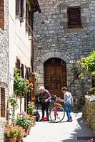 Oma is de straat aan het vegen en krijgt bezoek van haar kleinzoon