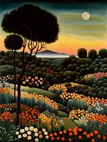 'Evening Flowerfields' uit de serie 'Magische Landschappen' toont een serene heuvellandschap bij zonsondergang met weelderige tropische begroeiing en kleurrijke bloemen. Dit schilderij, net als de rest van de serie, neemt je mee naar een surrealistische wereld waar de natuur op haar meest magische manier tot leven komt. Met een dromerige sfeer, levendige kleuren en gedetailleerde patronen, straalt deze landschapskunst een gevoel van rust en verwondering uit. Elk kunstwerk uit deze serie biedt een uitnodiging om te ontsnappen aan de werkelijkheid en te verdwalen in een paradijselijke omgeving vol leven en schoonheid. Deze tropische schilderijen zijn perfect voor liefhebbers van surrealistische landschappen en kleurrijke natuurkunst. Of het nu gaat om een schilderij van een glooiende heuvel, een zonovergoten strand of een uitgestrekte woestijn, elk artwork in de serie 'Magische Landschappen' belooft een betoverende ervaring. Ontdek de magie van deze exotische kunstwerken en breng een stukje droomachtige natuurkunst in huis. Ideaal voor iedereen die houdt van tropische kunst en unieke landschappen.