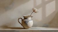 Zachte, minimalistische bloemencompositie die Japanse esthetiek combineert met rustige natuurlijke tinten, eenvoudige vormen en uitgebalanceerde negatieve ruimte, waardoor een serene, moderne en tijdloze botanische harmonie ontstaat.
