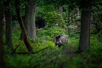 Dit everzwijn werd gefotografeerd in de bossen van nationaal park de Hoge Veluwe, Nederland. Daar leven nog zeer veel wilde zwijnen.